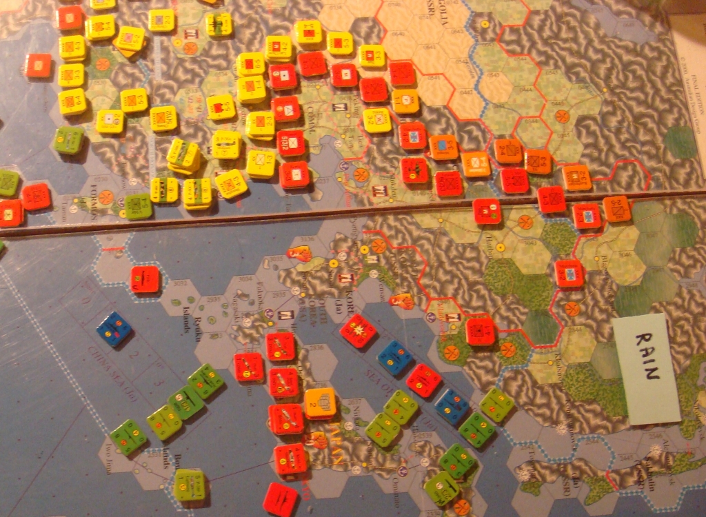 This is the final turn. The allies need only one more hex for the automatic victory: Tokyo!